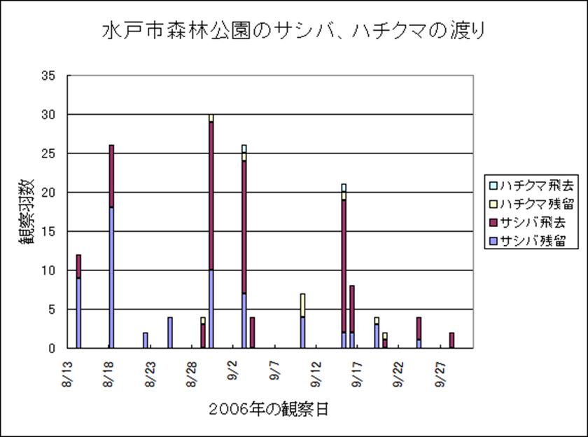 サシバの渡り観察状況を終わります。添付図でも分かりますが森林公園での渡りの最盛期は8月末から9月初めで中旬を