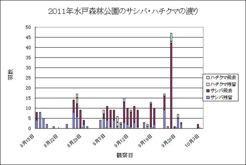 2011年も昨年に引き続き整備された水戸市森林公園大鍋展望台でのタカの渡り観察を8月15日から10月2日まで雨や